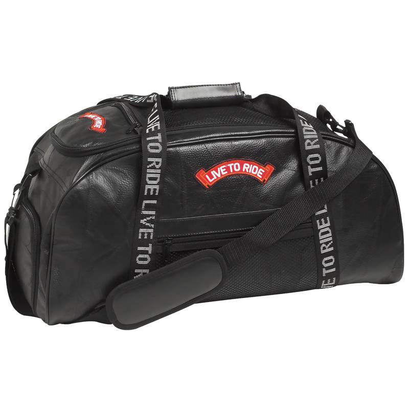 Embossed with LIVE TO RIDE patches sewn on the top and side and