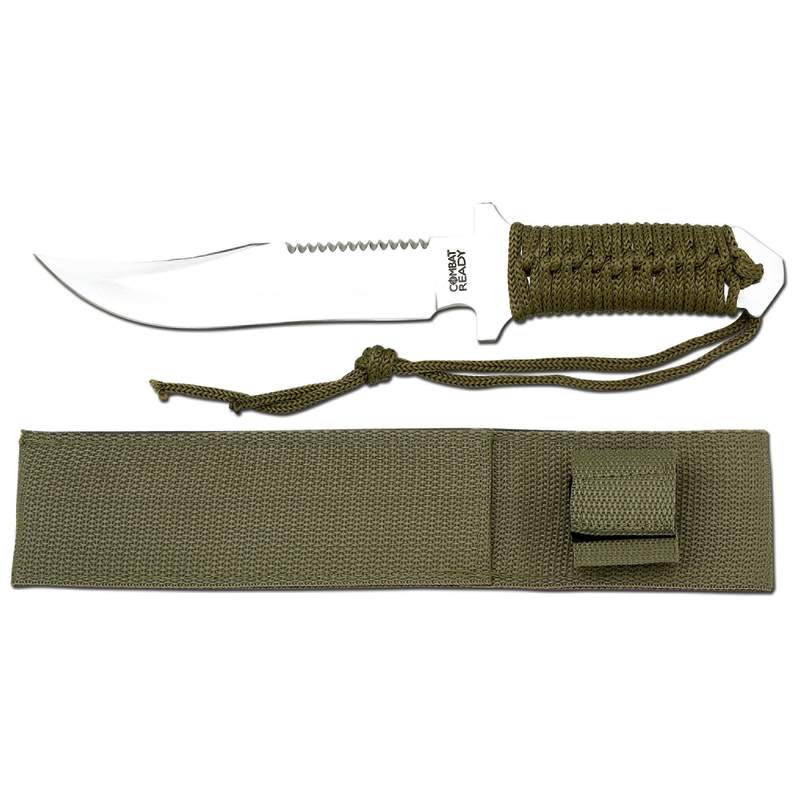 Features nylon cord wrapped handle, full tang and nylon sheath.